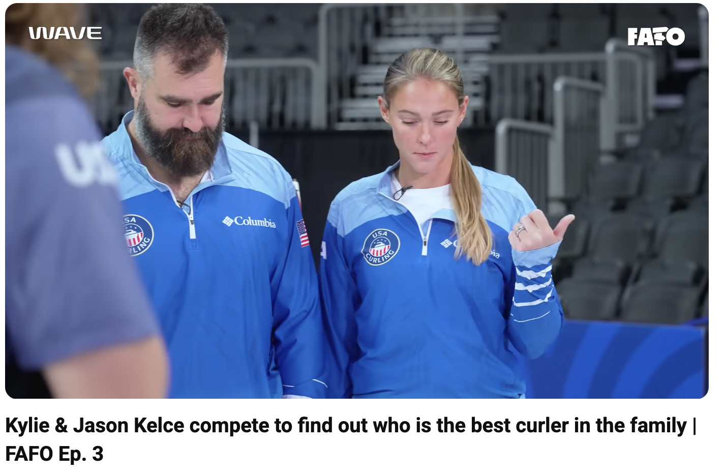 The next example takes us back to curling. In a special “FAFO” (F*** Around, Find Out) episode, Kylie and Jason Kelce hit the ice for the first time with Olympic gold medalists as their coaches.